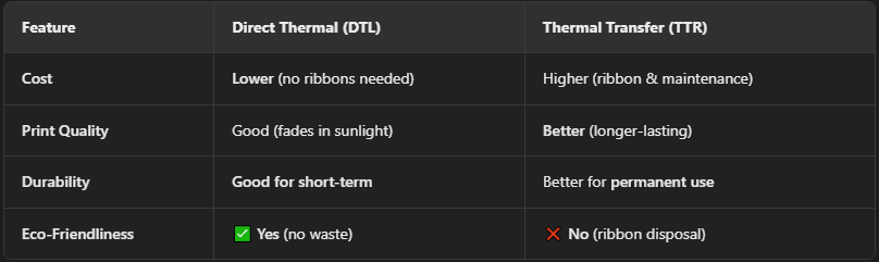 Αποφασίζοντας μεταξύ άμεσων ετικετών θερμικής (DTL) & θερμικής μεταφοράς (TTR); Εδώ είναι αυτό που πρέπει να ξέρετε: